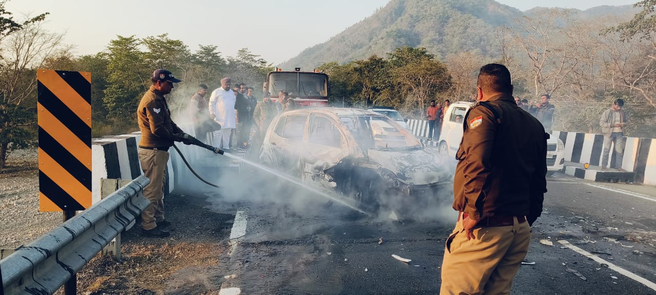 सोडा सरोली पुल पर दो कारों की आपस में टक्कर, एक कार में लगी आग