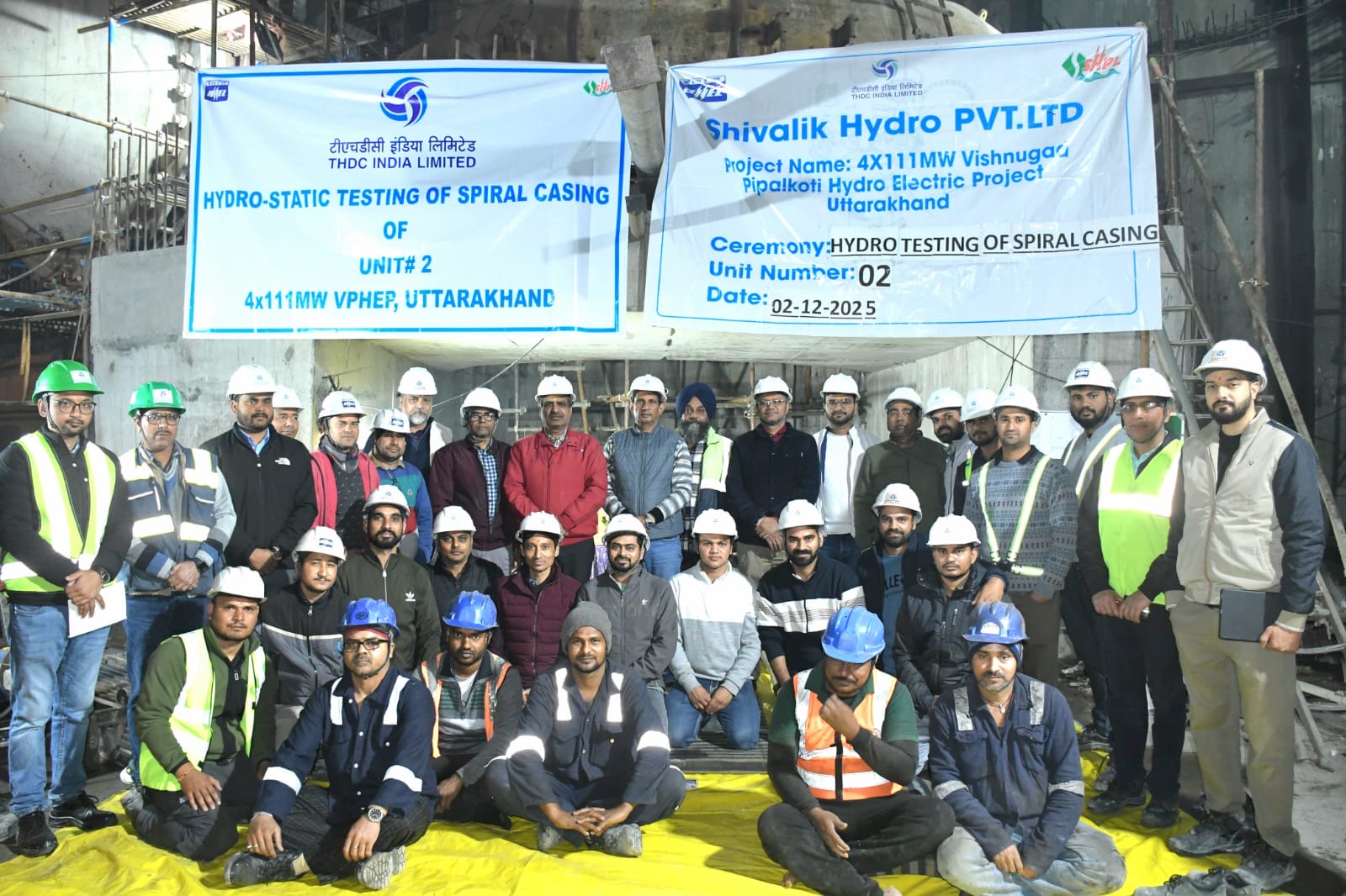 टीएचडीसी की वीपीएचईपी परियोजना ने यूनिट-2 के स्पाइरल केस का हाइड्रो स्टैटिक परीक्षण सफलतापूर्वक पूरा किया