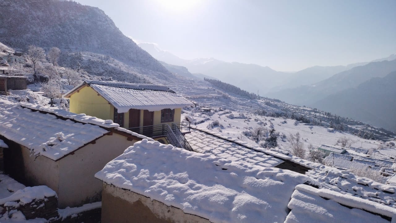 चमोली के ऊँचाई वाले इलाक़ों में जमकर बर्फ़बारी तापमान में भारी गिरावट
