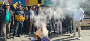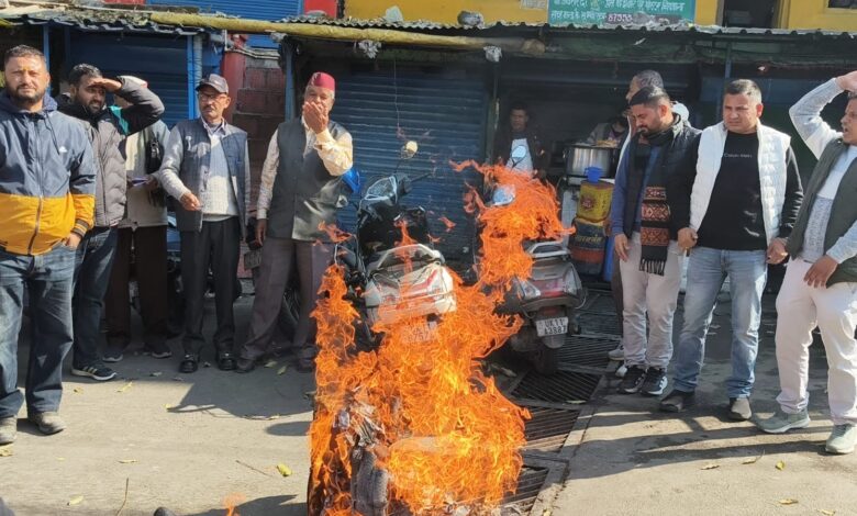 गोपेश्वर में कांग्रेस कार्यकर्ताओं ने यूपी सरकार का पुतला फूंका
