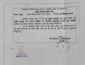 अब इस आधार कार्ड को देखिए – जो यूपी के बिजनौर जिले के कचहरी सराय जलालाबाद का जहां आरोपी युनूस का पूरा परिवार रहता है वहीं आपको जानकर हैरानी होगी कि अधिकारियों की मिलीभगत से युनूस ने चमोली जिले के क्षेत्रपाल इलाके का स्थाई निवास प्रमाणपत्र भी 2010 में बनवा लिया।