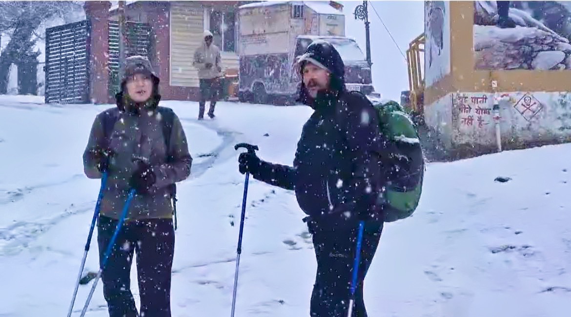 औली में जमकर बर्फबारी